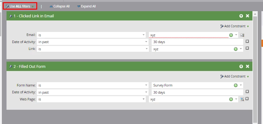 I advertised taking a survey in my last email, and had someone fill it out. In the survey, I did not ask for contact information. So now I want to go into Marketo and track who the person was that filled out my survey. I've created an "Email Link Performance Report" that went along with the email campaign, so I can see what links were clicked by a certain amount of people. But I can't figure out how to see specific names that clicked on the links.