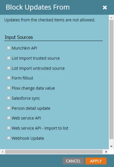Should I just select all of them if I don't want this field to get updated down the road? If I block Salesforce Sync, will that mean I won't be able to update it the first and only time I want it updated? If the field is empty and I block it, will Marketo update it the first time and then stop updating after that?