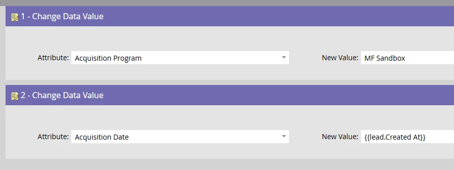 In my flow steps I will first set the Acquisition Date with a token that will render the exact date each record was created in Marketo. Then, I just need to set the AP to my newly created Program like this: