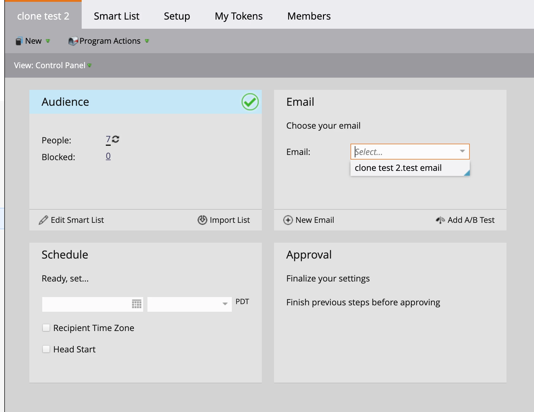 What I found as a workaround is creating a template with the email already approved and assigned to the program to clone and approve via API when necessary.