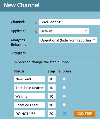 For operational channels, make sure to exclude them from reporting and keep all your program statuses at the same number. That way, when a process is complete, you can easily move someone back to the first status if you want them to move through the process multiple times.