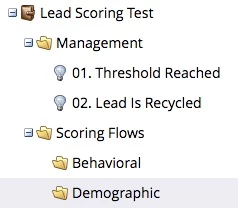 The scoring flows would go in their appropriate folders, while the two campaigns below live in a “Management” folder.