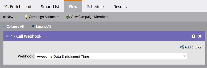 Enter a new data enrichment vendor, who provides you with a webhook that you call in Marketo when the lead is created to enrich them with data like company size, headquarters location, and industry.