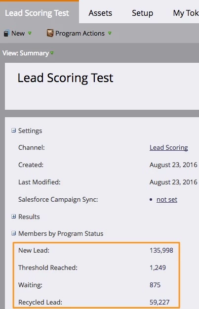 In this case, the program statuses serve to trigger a process in another program and control the flow of leads within this program. Another benefit of this structure is that you can see at a glance from the program summary view how many leads you have in each stage.