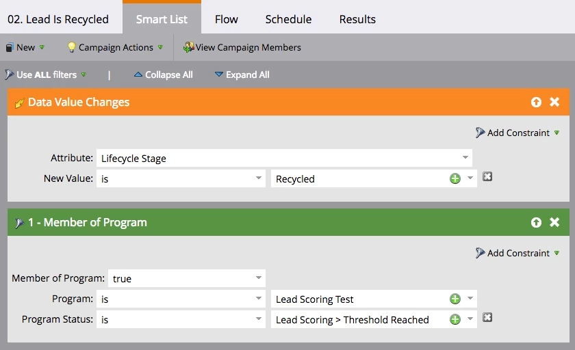 Additionally, your program needs to allow leads to be recycled, at which point there is a holding period where they are not eligible to reach MQL status again. After the holding period, their behavior score is reset to zero and they can reach MQL again.
