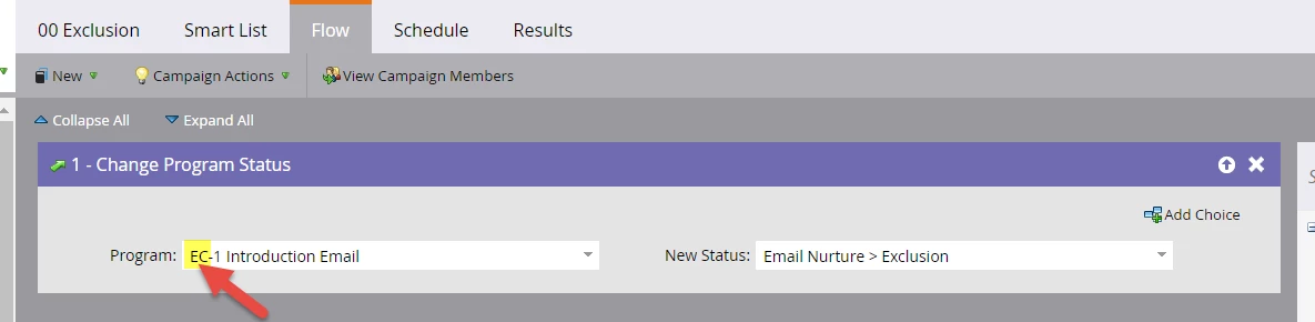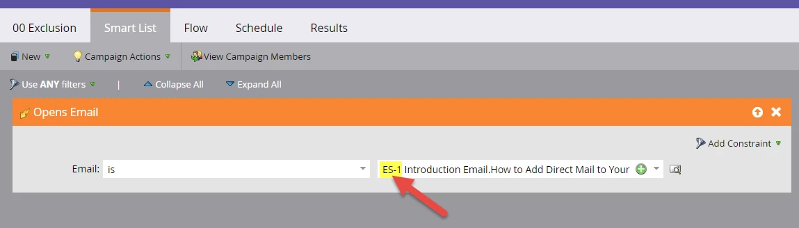 If they open this email, it triggers a smart campaign in the Exhausted Content version of the email (we call it the Exhausted Content stream). This smart campaign makes them a member of the EC version of the email program with the status of "Exclusion" we previously set up.