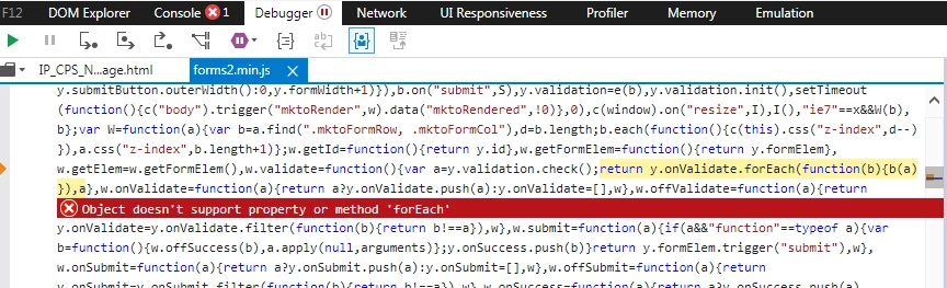 How to get forms2.min.js to work in IE?