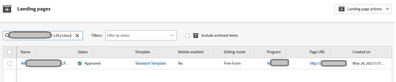 Looking for a solution to get the location of a landing page that has no form in it not even in the design studio, the LP is inside a program under Marketing activities, and we only have its .html link.