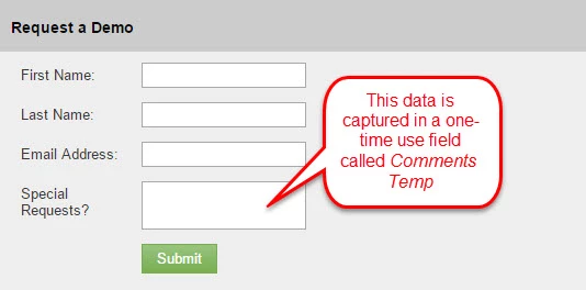 Step 3. Leverage all the new Comments Temp field across all appropriate forms. Also, when you get in data from trade shows, make sure to use the Comments Temp field upon import for the appropriate field. You do NOT want to use the standard Comments field as you will overwrite that data.