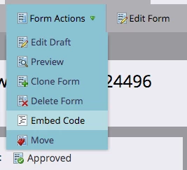 Now, go to the form you want to use and select Form Actions > Embed Form