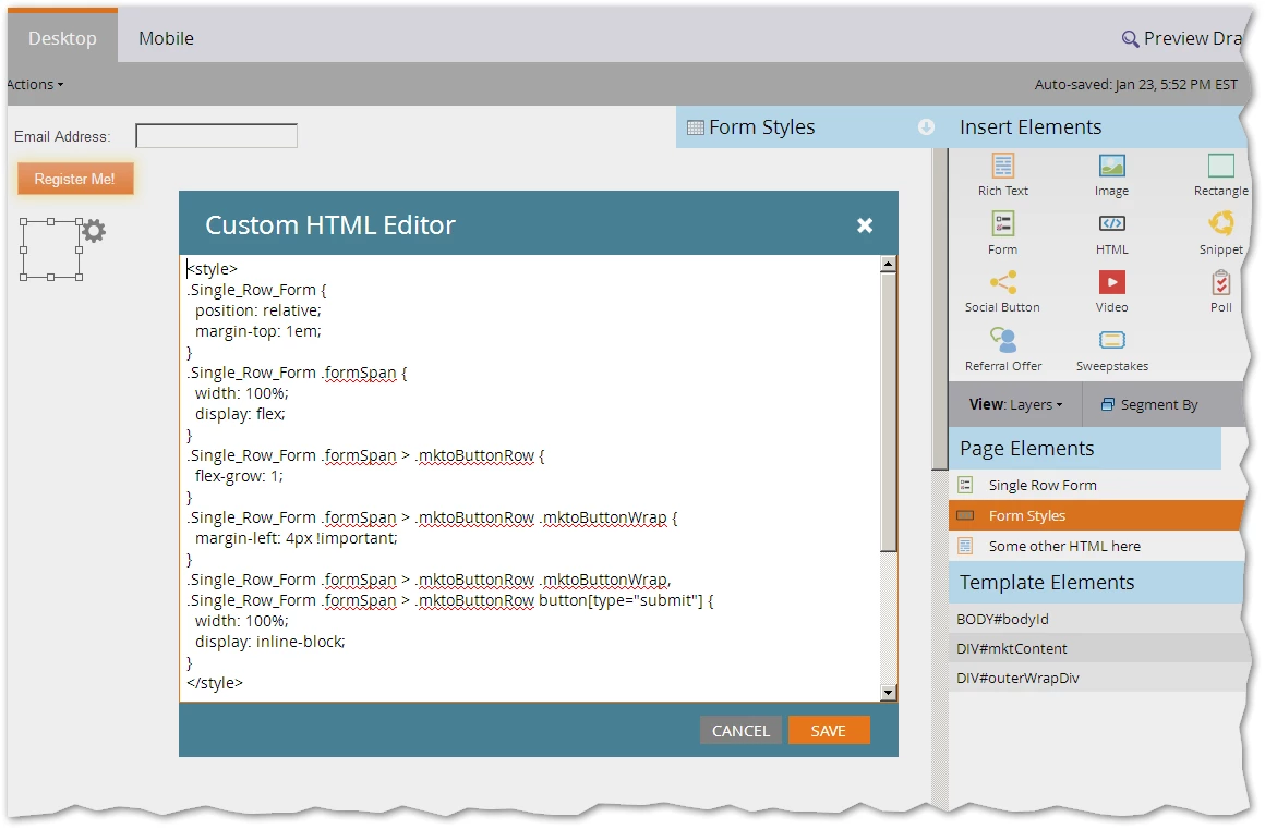 I was recently asked to help restyle a Marketo form to make it a single row, meaning just an email address and a submit button. This isn't something available out of the box in Marketo and when I searched the community I couldn't find ready made code so I thought I'd share.