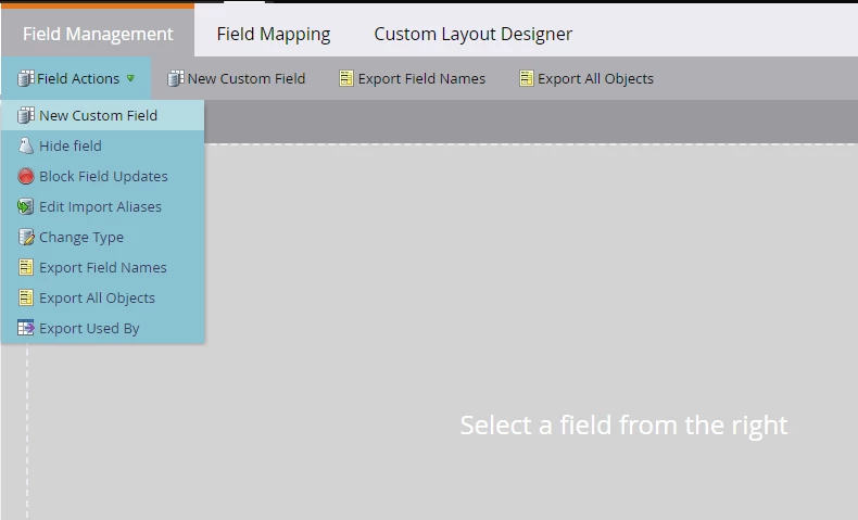 To create a new custom email field, go to Marketo Admin > Field Management > Click on Field Action dropdown > Click on New Custom Field.