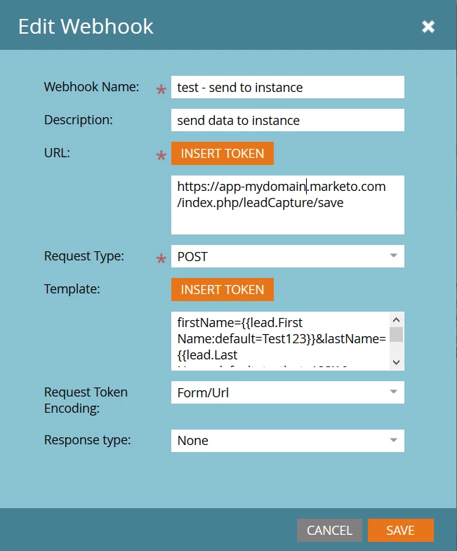 The goal is to send data from one Marketo instance (foo_instance) to another one (bar_destination) through the webhook_send securely after the form has been submitted. We were able to load test_form onto a web page and are able to see the data come into foo_instance successfully and when we view the Activity Log we can see the webhook_send being triggered with no errors. However, when we go to bar_destination instance, we do not see the lead created or updated.