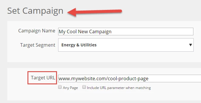 Want to show the campaign on specific pages? That’s where Target URL comes in. This is found in the Set Campaign section of the and defines the specific URL or URLs that a RTP campaign will appear on. Read more about how to do that here.