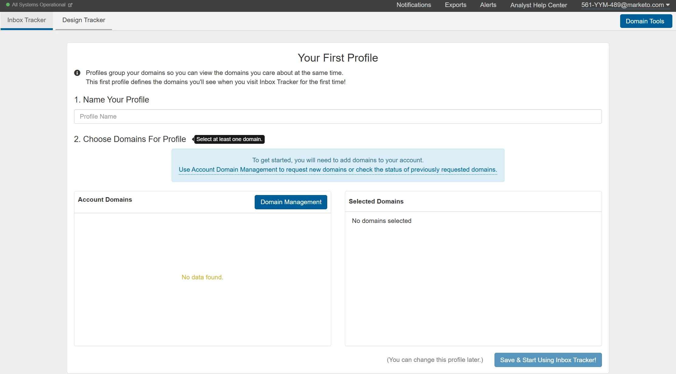 FYI - when I click Deliverability Tools, it directs me to this page and here's the screenshot of what I am seeing. It looks like we still need to set up the first profile, which I have no idea yet how to do.