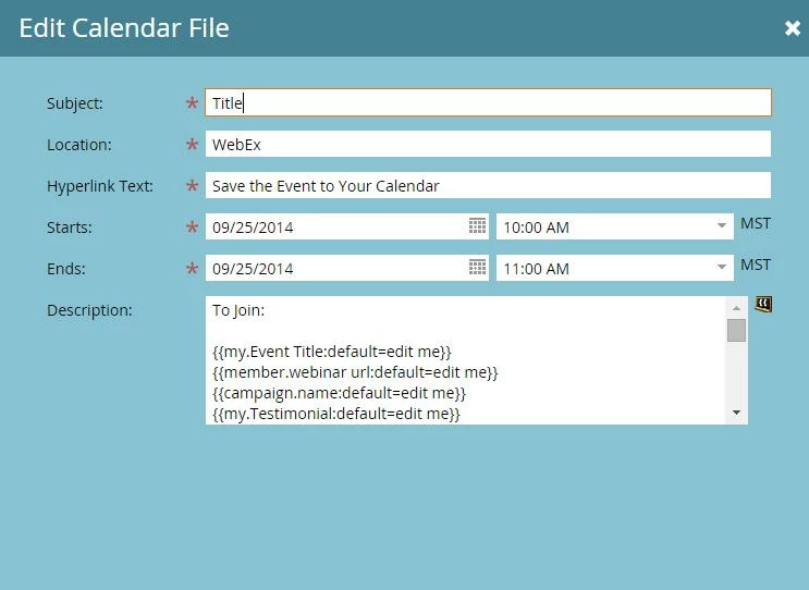 I've looked at other discussions here, but they aren't poinging me towards any solution. It seems to me that I'm doing everything right, but something must be going wrong since the tokens aren't working within the description of the .ics file.