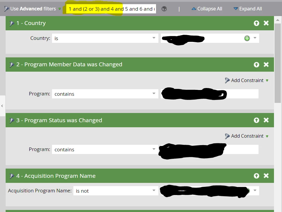 I am trying to create a smart list to pull out the contacts who are a member of my programs. However, I am confused with the filters applied in my smart list. I have a list of programs from which the contacts need to be pulled.