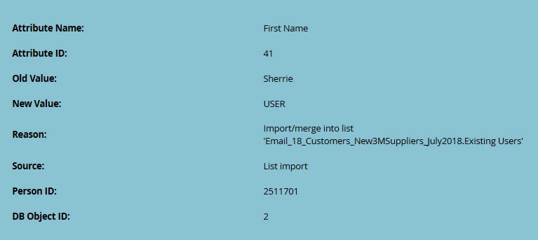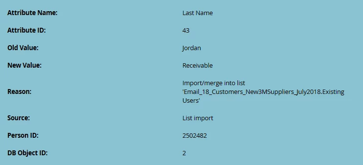 I completed a list upload a few days ago and have just discovered that the first and last names of certain records have been overwritten with new values such as "USER USER" and "Accounts Receivable." Two examples are below. Does anyone have any idea what happened? I expected to find some community posts with "Import/merge into list" but I didn't find anything like this. Two examples are below. Thank you!