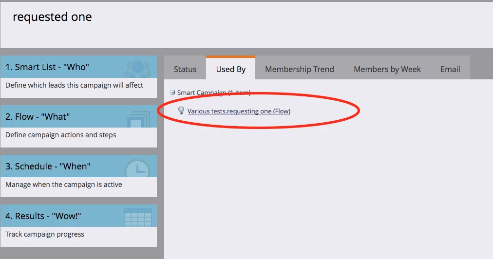 Currently, there is no indication to know which campaigns are calling the "campaign is Requested" trigger - The user need to go to the results and investigate one of the leads to figure out which campaign requested this campaign.