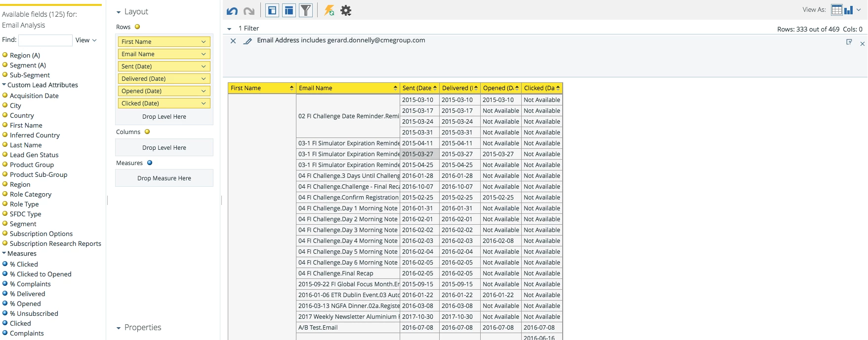 1) Is it possible to produce a report or an export file, showing each individual lead (from a specific list) and how many emails were sent to them, and how many emails opened, etc., in a specific time period?