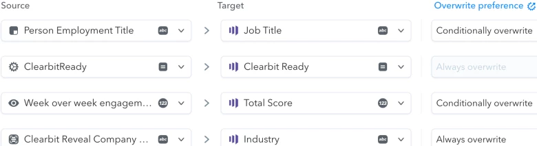 - “Conditionally overwrite” will overwrite the Marketo field if it is blank, contains [[unknown]], or the last value in this field was populated by Clearbit i.e. it will not overwrite this field if the value was updated by Marketo or the CRM you have connected to Marketo.