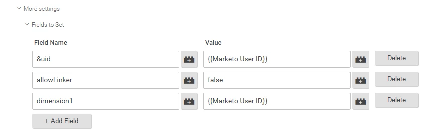 Note: though it’s tempting to use something like email address or name instead to label your session, this actually violates Google Analytics’ Usage Guidelines. Instead, you should use a third-party tool such as PII Viewer for Google Analytics to tie your Marketo user ID back to information you can read, such as email address, company or other demographics.
