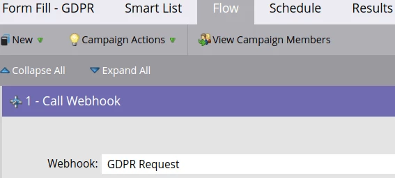 All you have to do is include the “Call Webhook” action in the flow of your Smart Campaign.