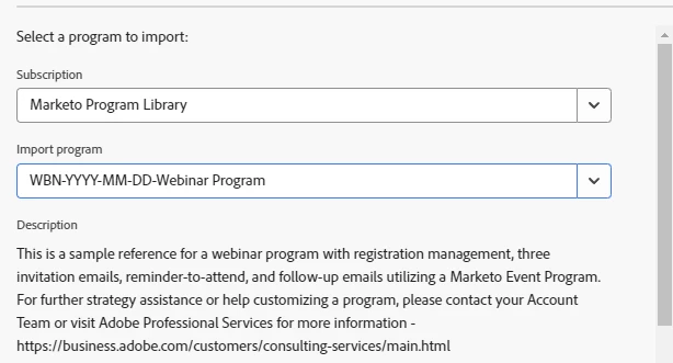 Side note: Adobe does make updates to other libraries for program imports, but those are only accessible during new Marketo implementations through an Implementation engagement.