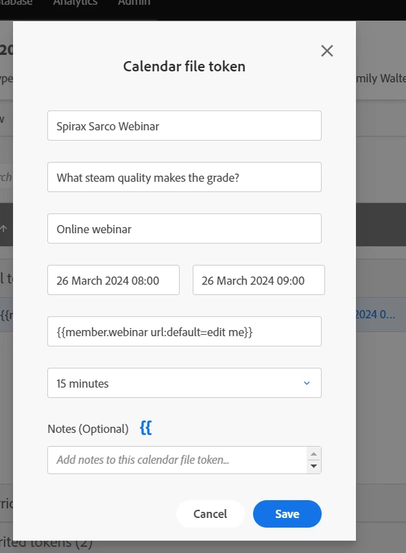 I'm trying to create a calendar file for an interactive webinar, but can't get it to display the webinar as a link. It always shows the full token e.g.{{member.webinar url:default=edit me}}.