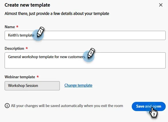 Creating a new template requires using an existing Organization or Standard Template as a base and providing a name/description for the same. Save the template so that it can be used by other users for creating Interactive Webinars using the new template. Saving will publish it for all users and there is no explicit hide functionality to display only specific templates.