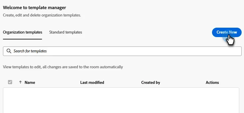 Click on “Create New” to create a new template or select/search an existing template and open it in a new tab to make modifications or delete the template, if need be.