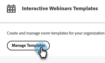 Once you are added as a user to the role which has this permission, you will see the “Webinar Templates” option appearing in the all new “Interactive Webinars” section appearing in the left navigation. Click on “Manage Templates” and this shall take you to another browser tab that will provide you the ability to create the Interactive Webinars Templates.