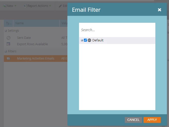 Another approach is to create a custom Email Performance Report for specific emails. This can be done within Marketing Activities, inside the Programs you create. Alternatively, you can also set this up within Analytics. Unlike the global view where all emails are selected by default, creating a custom report requires manual selection of emails. It requires expanding the options in the Email Filter View. To access this view, simply double-click on the "All Emails" option (snapshot above).