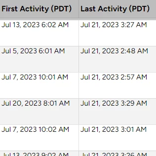 - Use the First Activity Date to get an idea of when the email was sent. This method isn't as precise as the first one, but it's quicker and provides a reasonable estimate, even if it's not 100% accurate