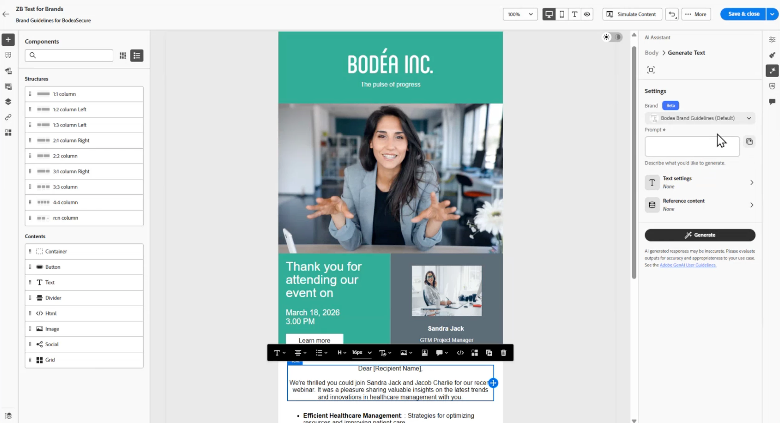 Critically, Brands works across both AI-generated and manually written content, so your entire email creation process is governed consistently, regardless of how copy originates.