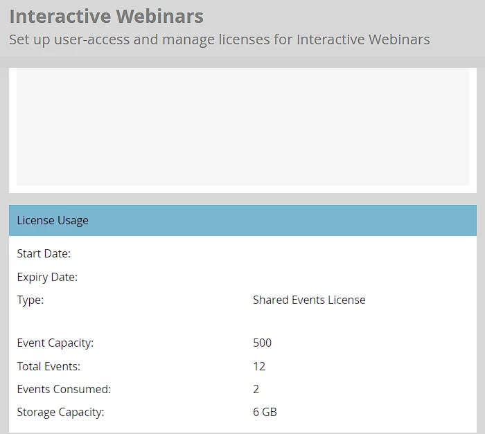 - License Management: Marketo Admin can view the licenses available, regulate webinar creation, and request more licenses once they have expired or exhausted by contacting the Sales partner.