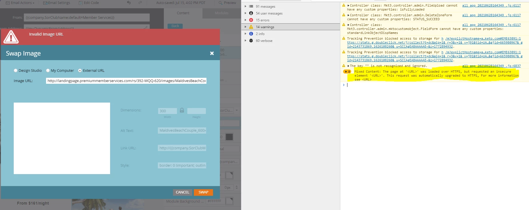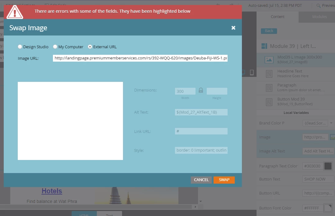 In my email editor, I am trying to change an image that is part of a module.