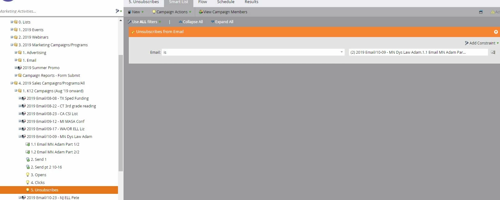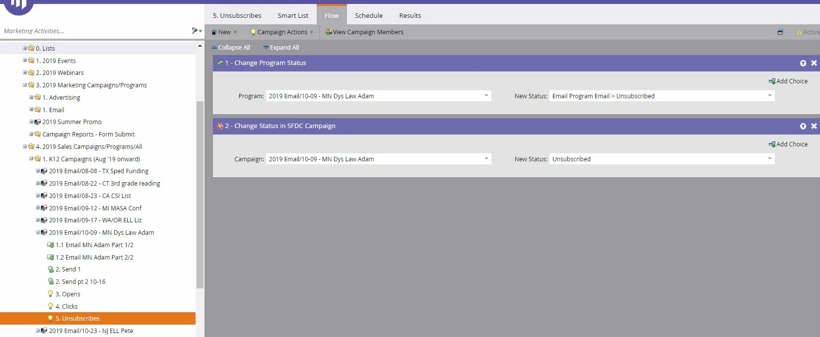 In our instance every email we send has smart campaigns that listen for unsubscribes, and the flow in Salesforce is to mark them as that status for the email campaign? Is this necessary? I have attached pics that show what we do.