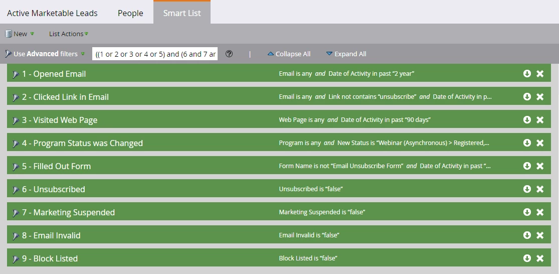 I don't think you should use that filter to determine if the person is engaged/active or not. You should rather be using lead activity filters - e.g., "Filled Out Form", "Visited Webpage", etc. in your SL to filter out people who're engaging with your marketing assets. Following is the SL configuration that we used in the past, FYR -