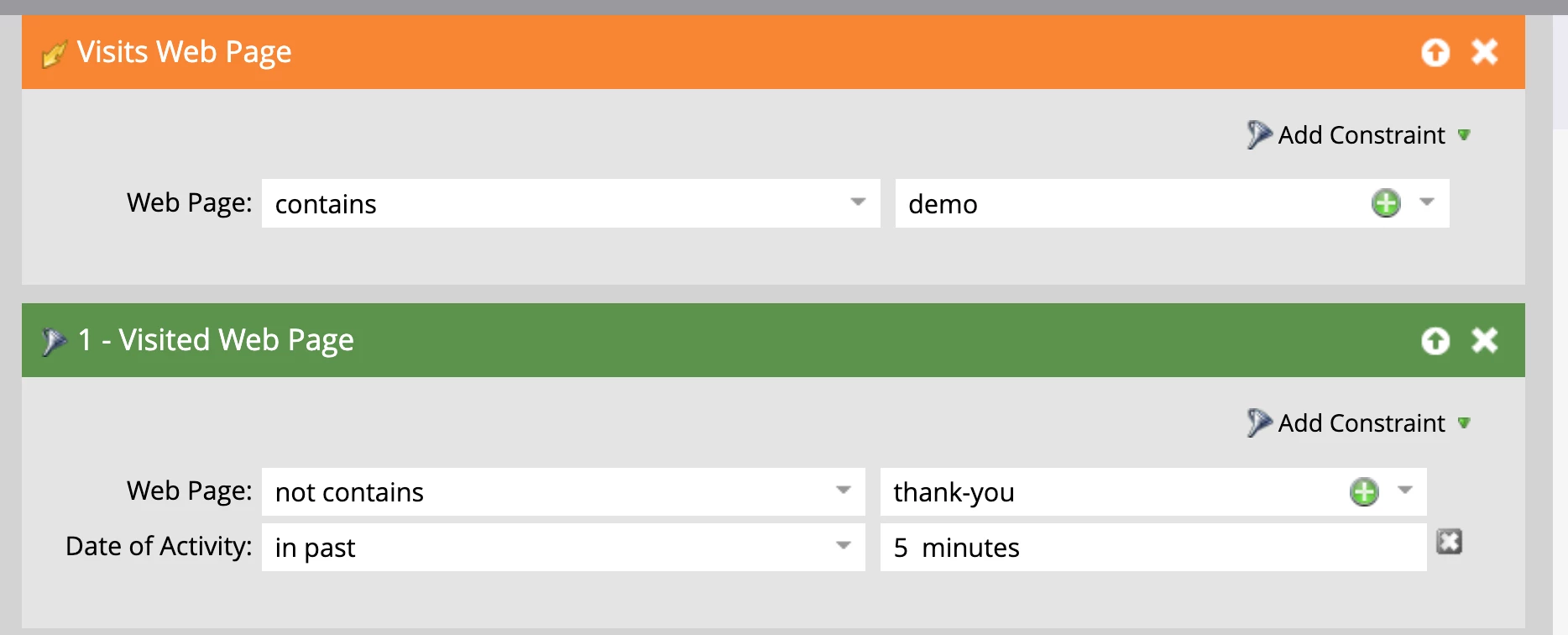 Is it possible to configure Visits Web Page to exclude thank you pages.