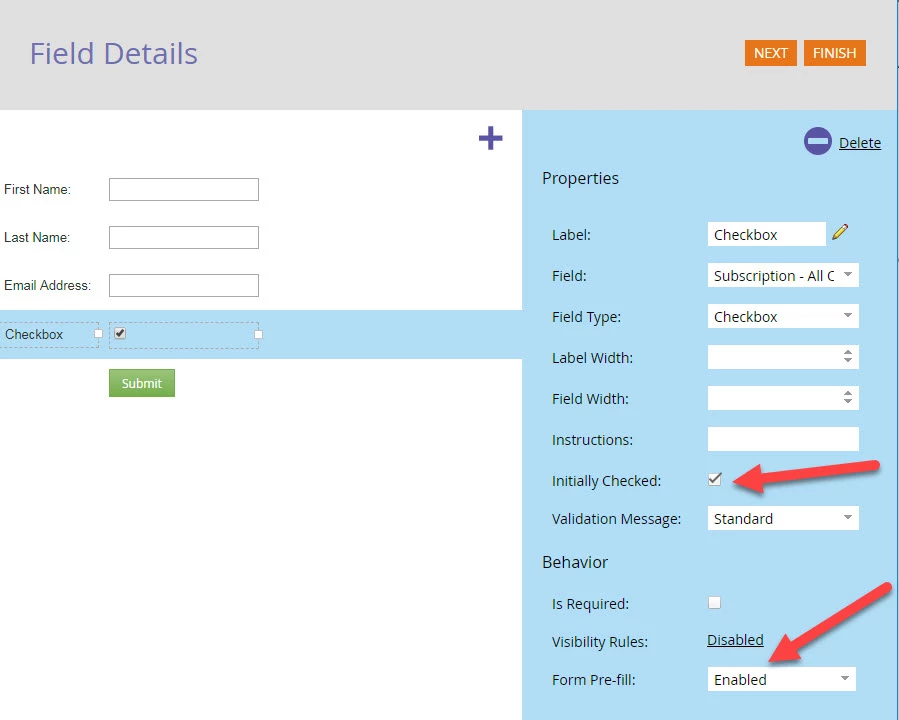 I've created a form on a follow-up landing page that enables people to specify their topics of interest through checkboxes.