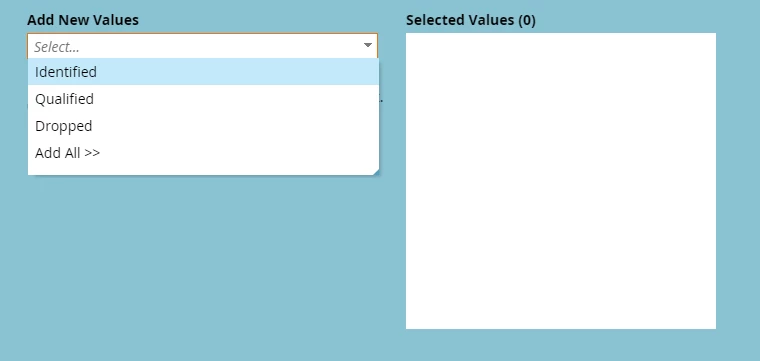 - At the popup, click the drop down and add all value. The Value will be added to the right