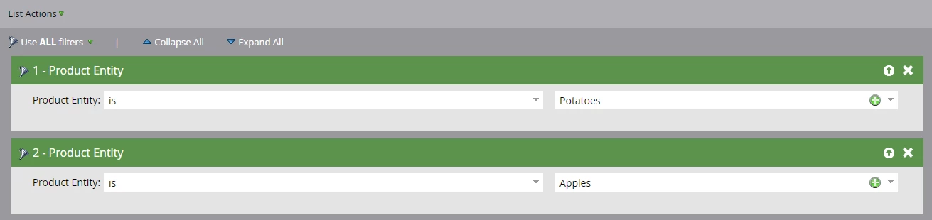 In Marketo, I want to target only those that has potatoes and apples interest identified: