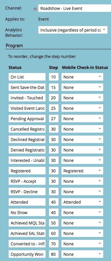 Pretty straightforward question: if I wanted to make a channel with x amount of statuses, would Marketo be able to support that? Bear in mind, I'm not looking to assign unique step values to each—I just want x amount of statuses.