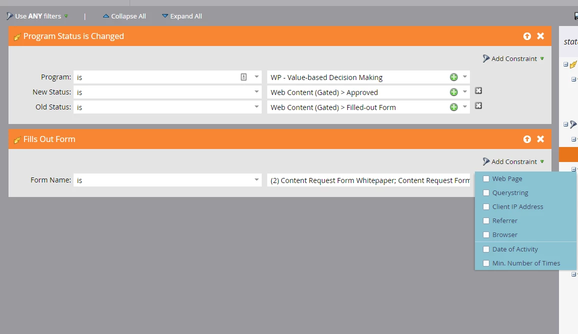 4) Once they've been approved, a trigger campaign is set up such that when the program status is changed to approved from filled-out form, an email is sent to with the white paper to the person who requested it