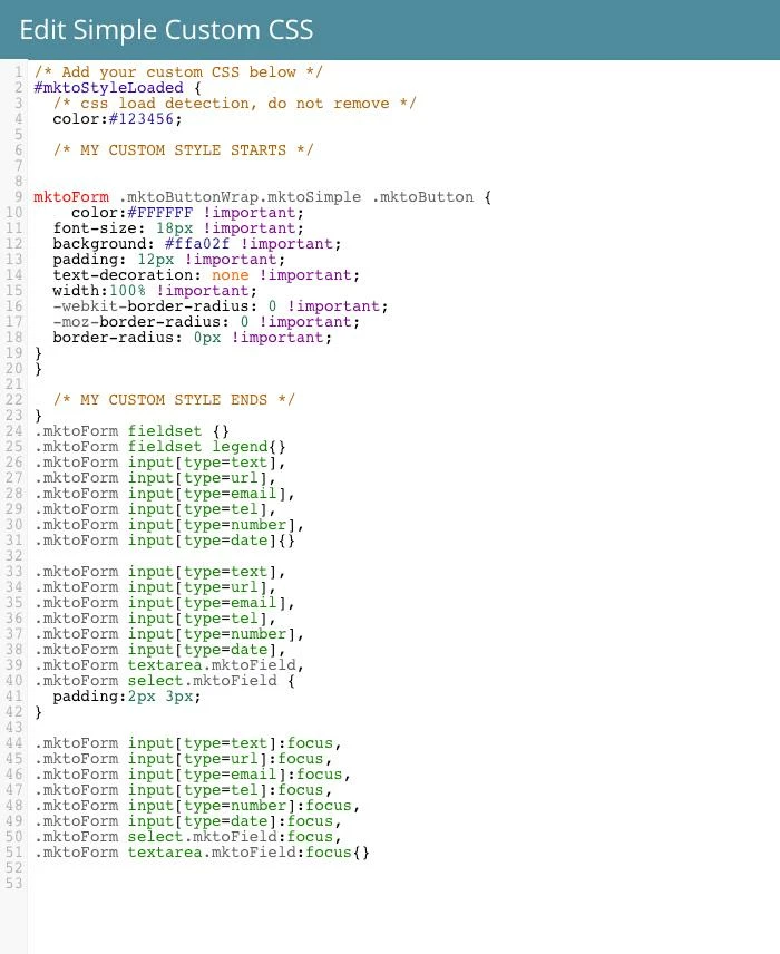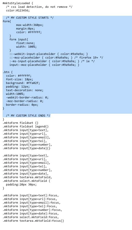I put !important after each style to make sure the browser uses my styles instead of Marketo's.