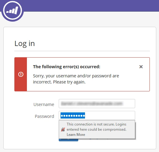 - Login is done over an unsecured connection