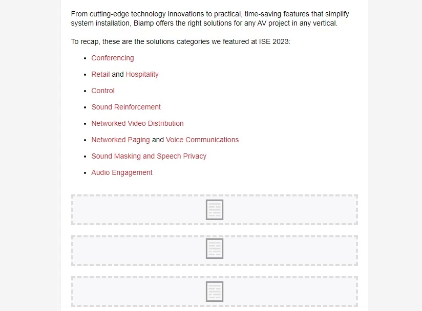 I'm trying to create an email with variable dynamic content blocks.