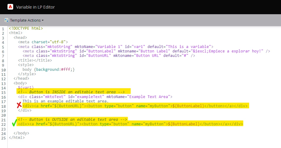 (above) There are two buttons here (same button) -- one is included inside an editable area, the other is outside the editable area