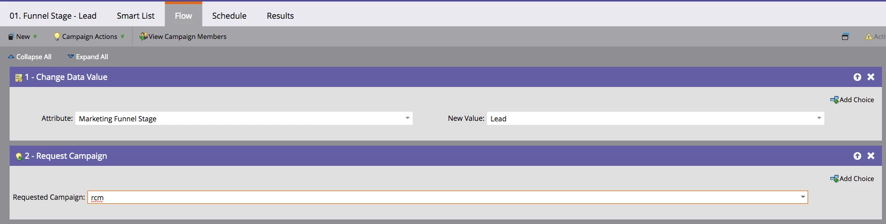 We're in the process of creating and launching a new RCM to better align with some major changes in our Marketing Funnel. We've built the new Marketing funnel in the RCM and have configured all the transition rules with a Campaign is requested trigger as depicted below (Figure 1.)